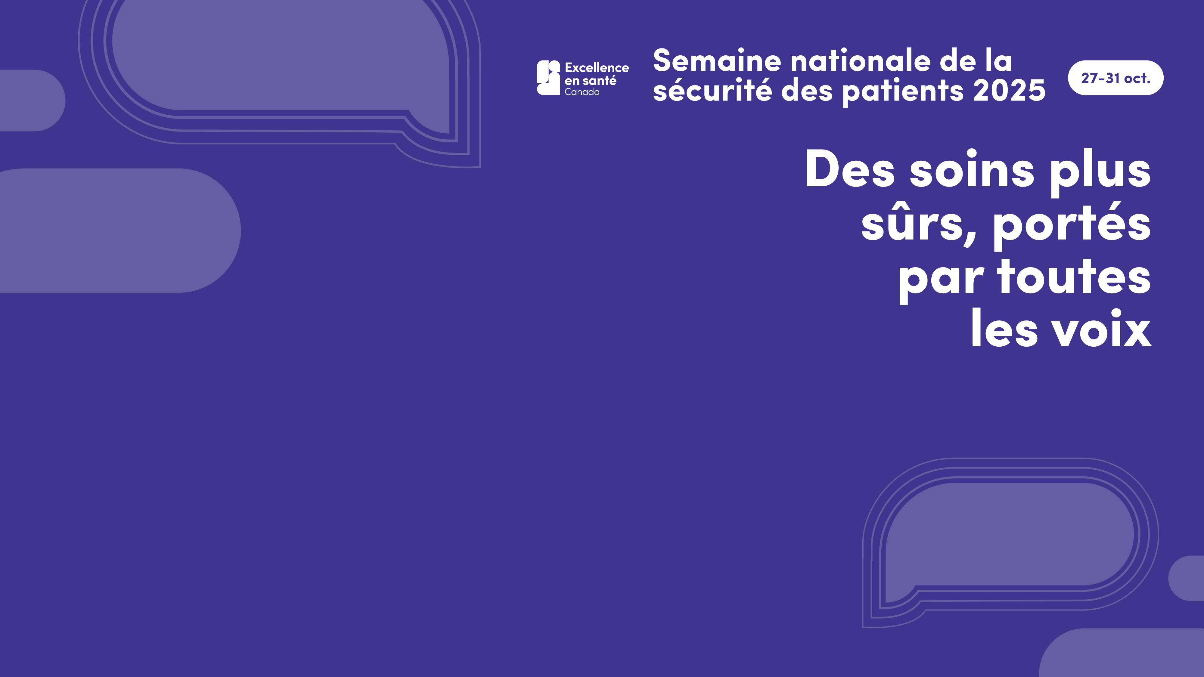 La Semaine nationale de la sécurité des patients(SNSP) est une campagne annuelle organisée par Excellence en santé Canada qui fédère des personnes de partout au pays autour d’un objectif commun : rendre les soins et services de santé plus sûrs pour tout le monde. Le thème de cette année, Des soins plus sûrs, portés par toutes les voix, nous rappelle combien il est important d’écouter, de réfléchir et d’agir collectivement. Laissons chaque voix s’exprimer afin de renforcer la sécurité, de bâtir la confiance et d’opérer des changements concrets.